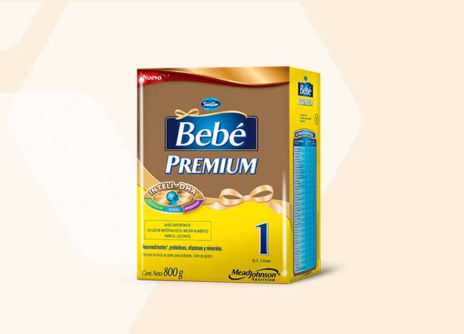 Fórmula para lactantes con DHA, ARA, colina, hierro y una mezcla exclusiva de prebióticos (Galactooligosacáridos y Polidextrosa).